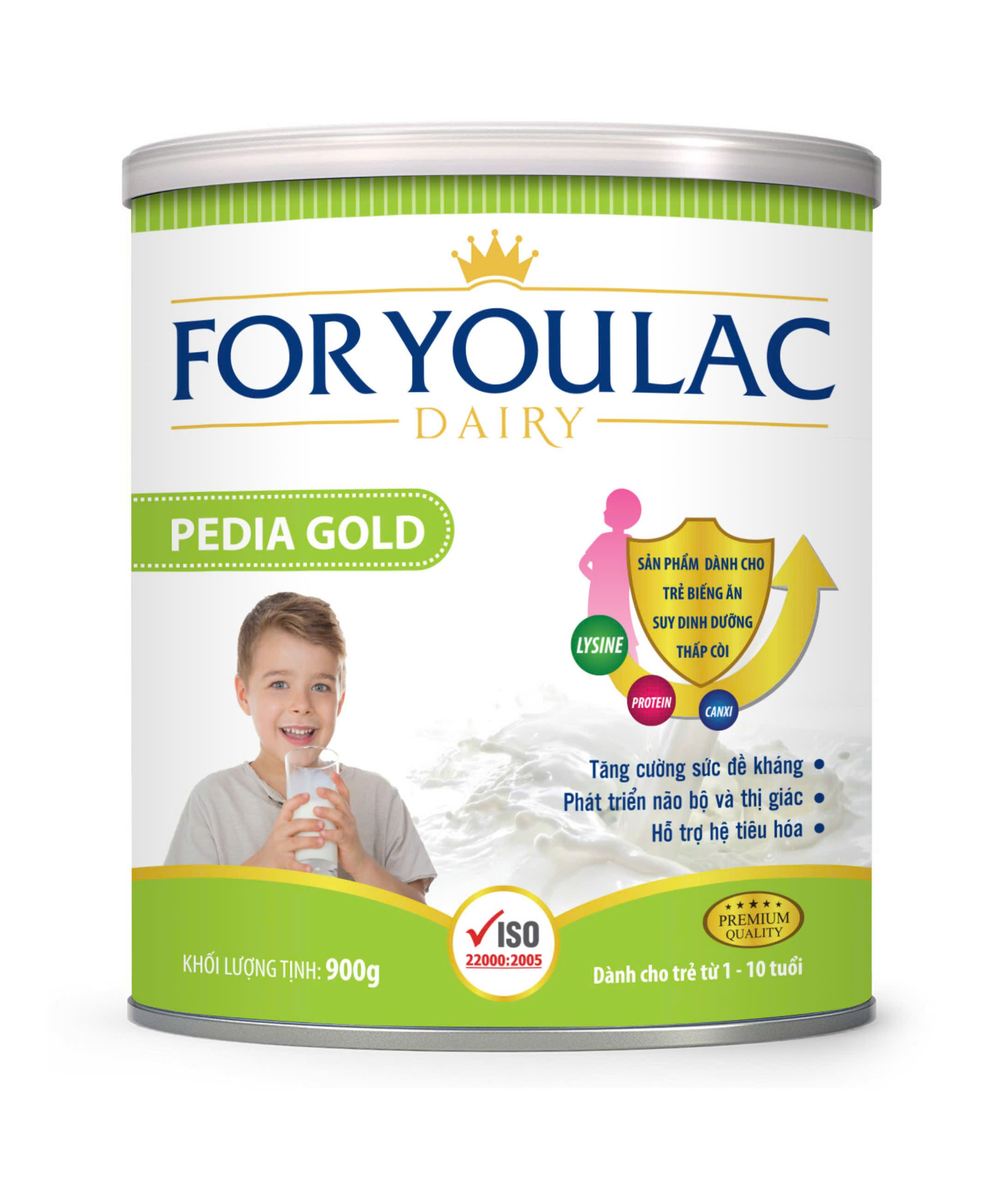 FOR YOULAC PEDIA GOLD là sữa công thức dành cho trẻ từ 1 đến 10 tuổi, giúp bổ sung dưỡng chất thiết yếu cho sự phát triển thể chất và trí não. Sản phẩm chứa hàm lượng cao DHA, canxi và các vitamin cần thiết, hỗ trợ tăng trưởng chiều cao, hệ miễn dịch và sức khỏe đường tiêu hóa.